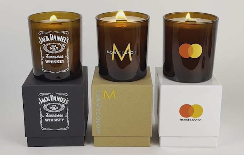 Custom Luxury Amber Candles with Crackling Wooden Wicks and Elegant Gift Boxes