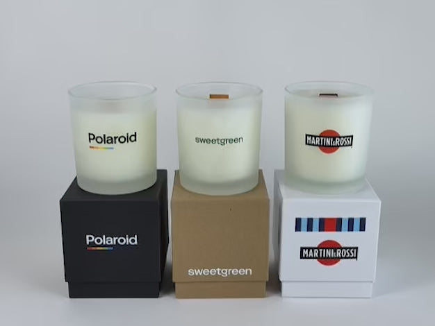 Define your brand with bold sophistication using our 14 oz. Black Glass Candle, custom printed in full-color. The matte black vessel provides a dramatic backdrop for your artwork, allowing vibrant logos and detailed designs to stand out with striking clarity. Each candle is filled to order with our eco-friendly soy-blend wax, available in over 90 signature fragrances, and finished with a natural crackling wooden wick. Elevate your presentation with optional branded wooden lids and premium two-piece gift boxes. Made in the USA.